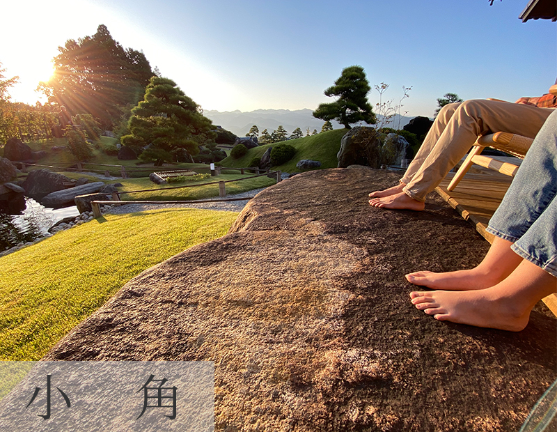 一號店「蔵王」主樓朝東,二號店「小角 おづぬ」的主樓面朝東南,一早就能夠在美麗的太陽與壯麗景色的陪伴下迎接新的一天。兩庵都有準備「接觸大地」體驗用的石材,請赤腳享受直接由大地而來的舒緩療癒效果吧!
