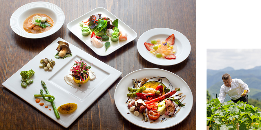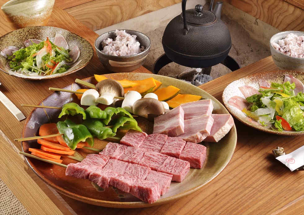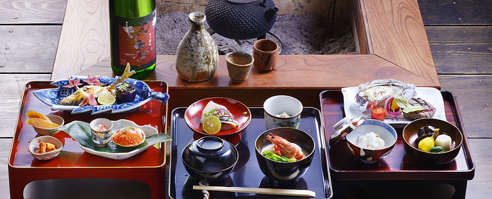 我們提供當地料亭套餐,三重縣伊賀地區名張市飼養的當地名牌黑毛和牛「伊賀牛」料理、以地爐烹調的料理等。更備有米其林星級餐廳「萬惣」主廚料理。