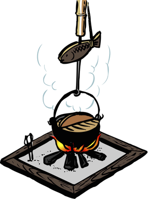 帶有此標記的菜餚是在圍爐裏中製作的。