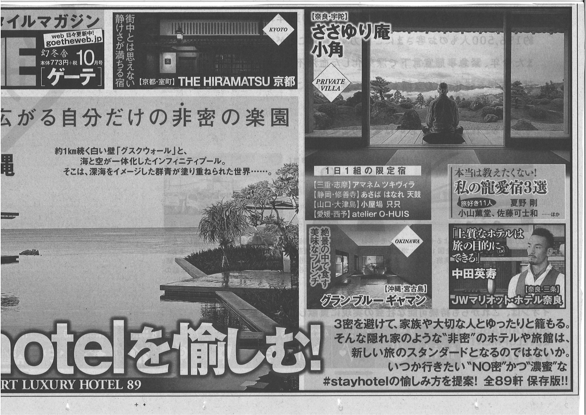 雜誌8月號的「想要專程前往的HOTEL:新的住宿體驗BOOK」欄上被介紹了。