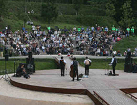 注) 「森林走廊計劃」是由雕刻家井上武吉氏以其創作起點的村莊風景再發現計畫,構想是將整座村莊化為人類與自然共生的美術館。Arcadia意味著受自然恩惠的理想之鄉。art arcadia計劃意指文化藝術活動。與藝術結合,以自然與文化的調和、自然與人類的調和,創造現代的理想之鄉為目標。