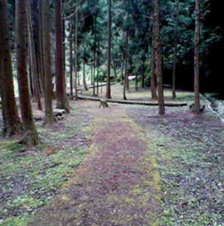 從主園路分支出來的是一條連綿起伏、樹木扶疏的步道,將人們引至以前就有的「弘法之井」。越靠近主園路,步道越寬,越靠近古井就越窄,從古井往回看,可見到呈兩條平行線的路樹。這是在舊室生村出身的已故雕刻家井上武吉先生所應用遠近法的錯視效果,在他的作品中常見此表現方式。因此作家故意應用這方式,向井上氏致敬。是可以體驗不可思議現象的地方。兩旁的路樹是紅要黐(日本紅光葉石楠)。