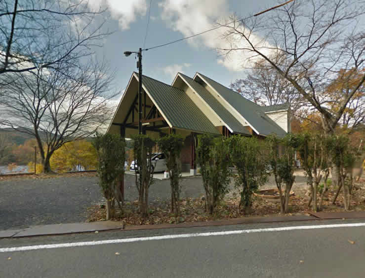 道路盡頭,在建築正面放有笹百合SASAYURI的獨木舟