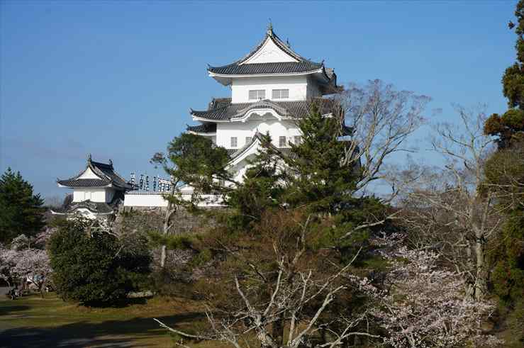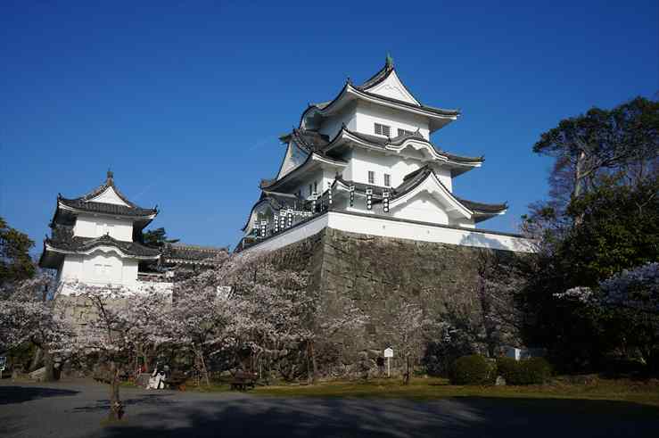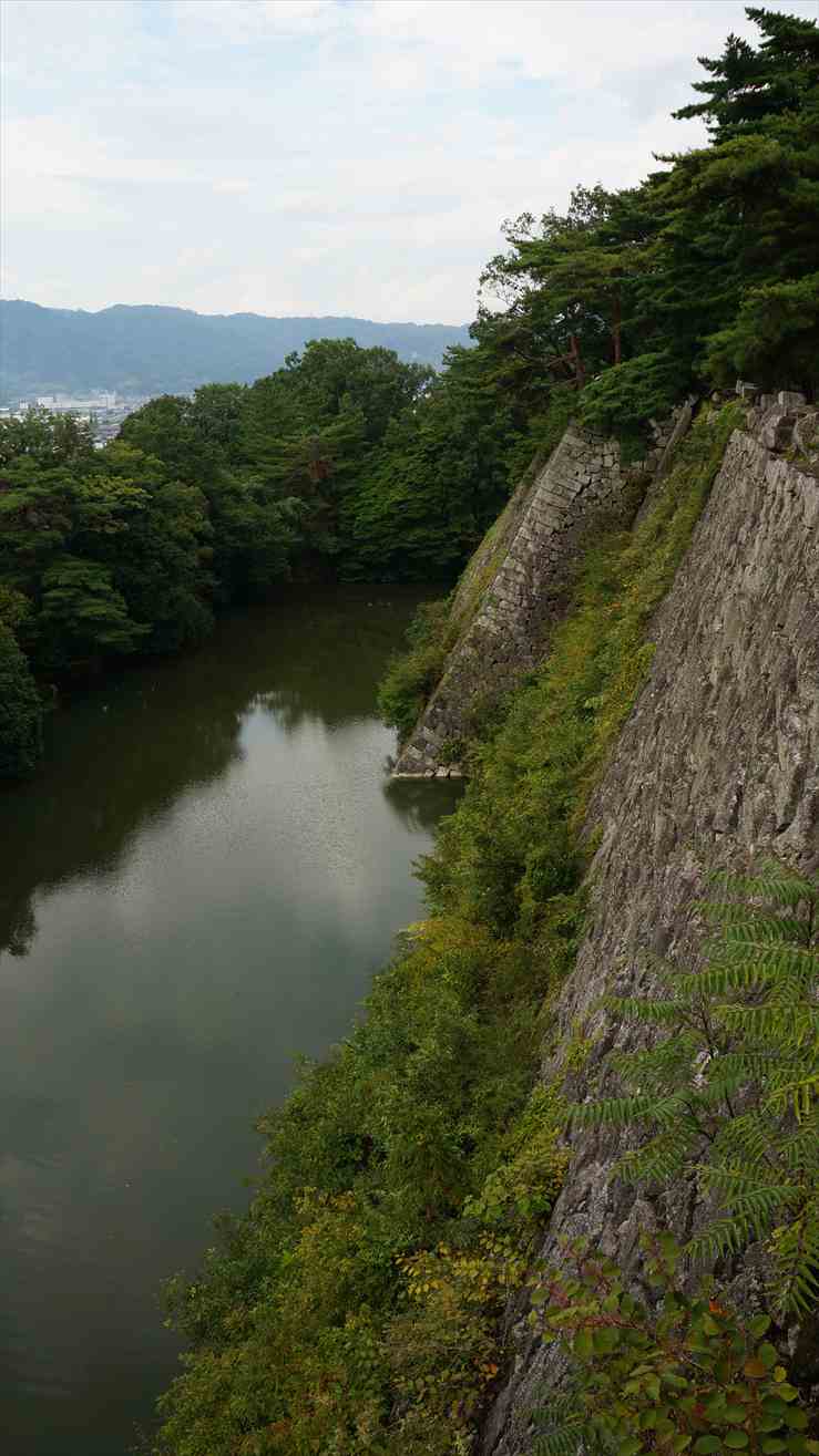 「被稱為忍者故鄉的伊賀上野是被山嶺包圍的盆地,其中心有建築在海拔184公尺高台上的平山城。伊賀上野城三層白色城牆被比擬為收著翅膀的鳳凰而稱為「白鳳城」。天正13年(1585年)豐臣秀吉為了守備大阪故將筒井定次的領地調換到此處,讓筒井定次在此修築了城堡。後來,慶長13年(1608年)深受德川家康信任的伊勢國津藩藩主藤堂高虎,為了進攻大阪重修城堡。現在的天守閣是昭和10年(1935年)復原的。石垣有30m高,是日本屈指可數的石圍牆。1980年上演的黑澤明導演的電影《影武者》便是在這裡拍攝的。上野城本丸西側的內護城河與高石垣是讓人彷如進入電影《影武者》世界的必看景點。」