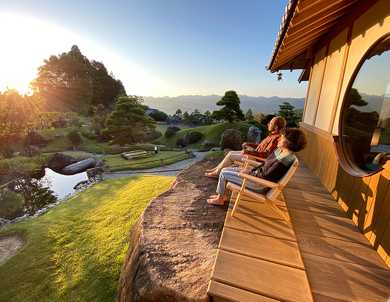 一號店「蔵王」主樓朝東,二號店「小角 おづぬ」的主樓面朝東南,一早就能夠在美麗的太陽與壯麗景色的陪伴下迎接新的一天。兩庵都有準備「接觸大地」體驗用的石材,請赤腳享受直接由大地而來的舒緩療癒效果吧!