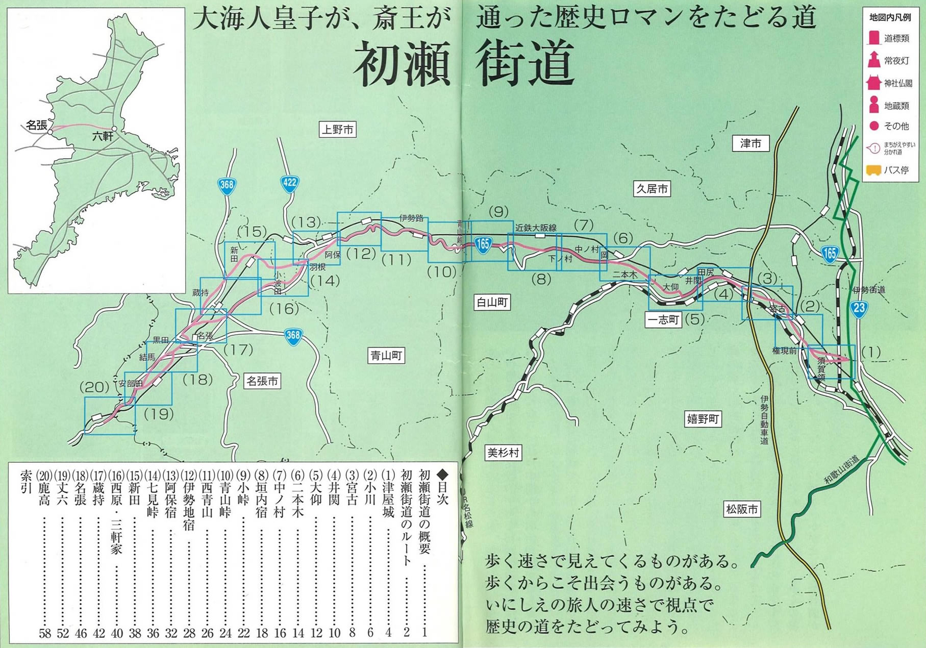 從京都・大和往伊勢連結的初瀨街道,全程長達約十四里十七町(約56公里)