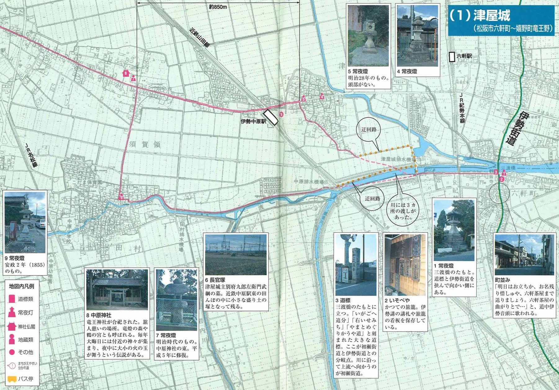 當時,參拜客會在初瀨住一晚,隔一天在青山峠的山麓,伊勢地宿(伊賀市)再住一晚。隔天在二本木(津市白山町)用午餐後在松坂六軒住了第三晚。從大阪方面過來伊勢,單程需要4到5天的旅程。