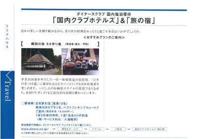 中介紹本庵。這是縣政府觀光局為向旅行社、代理商宣傳奈良縣觀光而特製的手冊。其中旅館類僅刊登一家,就是我們「笹百合SASAYURI庵」。真不好意思。謝謝!