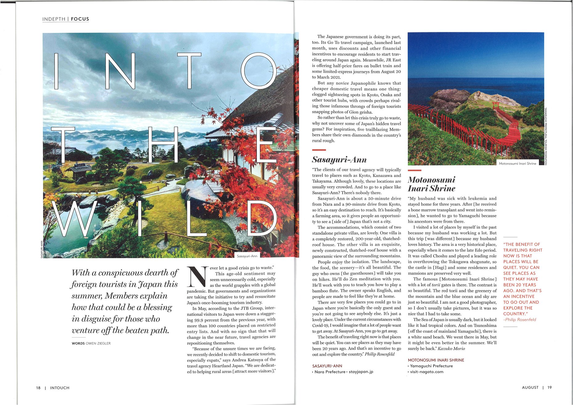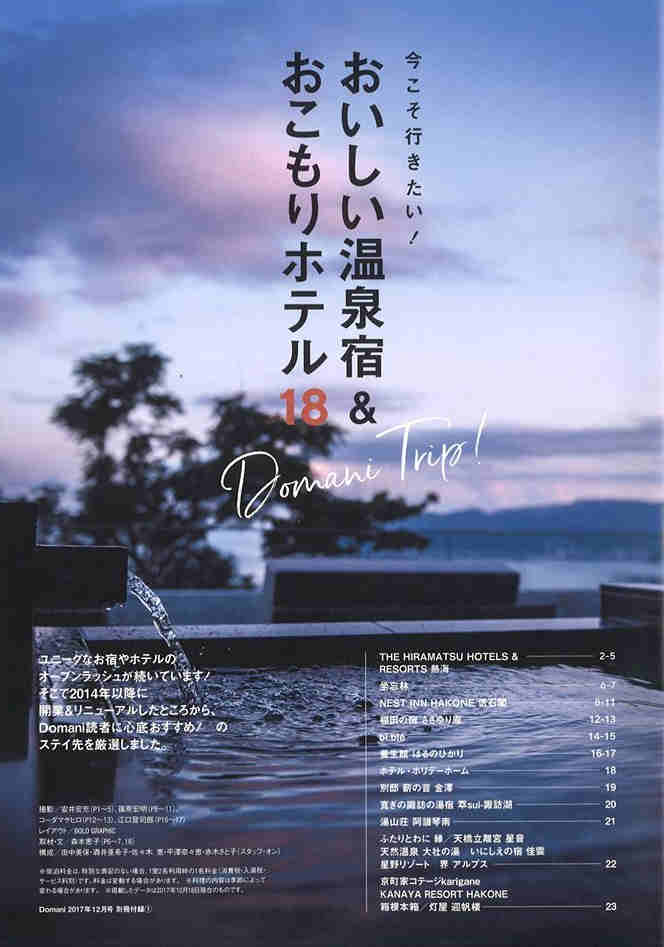 雜誌8月號的「想要專程前往的HOTEL:新的住宿體驗BOOK」欄上被介紹了。