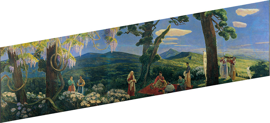 這四張畫作展示於東京的星藥科大學本館裡斜坡的兩側,1943年(昭和18年)5月完成,畫作中描繪宇陀當時藥獵的風景。這是星藥科大學成立三周年時,由星藥科大學暨星製藥的創辦人「星一先生」提議繪製的紀念畫。此畫作由星製藥公司所屬的6位畫家,基於時代考證研究後繪製而成,如實地呈現出推古朝時期的「藥獵」及「獵取鹿茸」的大作。本庵特別得到星藥科大學的許可,才有機會藉此壁畫,將日本最古老的獵藥鄉宇陀市,介紹給大家。在此向星藥科大學致謝。 庵主 松林哲司