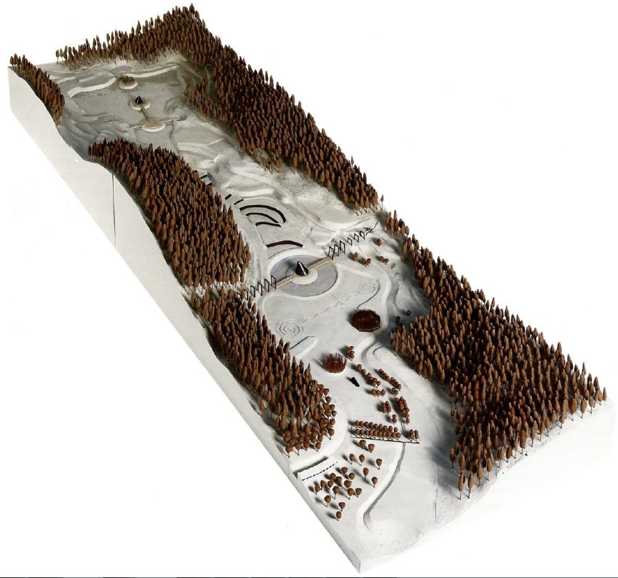 ・「以自然創造第二代自然」的概念,盡量重現昔日生活的足跡、梯田、森林等構成要素,象徵性地表現出人們懷念的往日風景。
