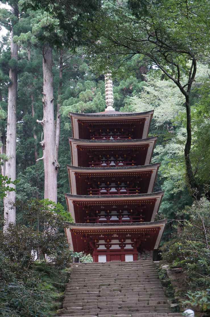 800年左右興建的五重塔僅次於法隆寺塔,是日本第二古老的塔型木造建築,木頭表面均塗有朱漆。也是被指定為國寶、重要文化財並建在戶外的木造五重塔當中最小的一座。約16多公尺高,初重部分單邊長度2.5公尺的小型塔,高度只有興福寺五重塔的三分之一