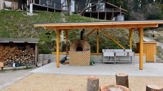 笹百合SASAYURI庵主屋旁邊設有眺望絕景的BBQ烤肉場與披薩烤爐。與家人朋友一起充分享受山鄉的野外空氣。晚上還可以聚在營火邊,在寧靜中欣賞滿天星星。