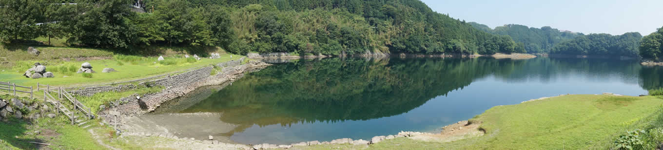 青蓮寺水庫建於青蓮寺河上,是奇景・香落溪的入口。青蓮寺湖,春天的櫻花、秋天的紅葉,一年四季多姿多彩的美景倒映在湖面上。湖上可以划獨木舟,也可以賞鳥、釣黑鱸,是一個休養勝地。湖濱設有公園、網球場,附近的青蓮寺湖觀光村裡可以採收葡萄、草莓,在這裡可以和家人度過愉快的時間。
