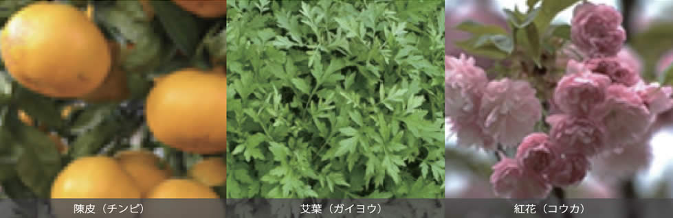 黃檗、獨活、當歸、川芎、芍藥、陳皮、艾草、紅花